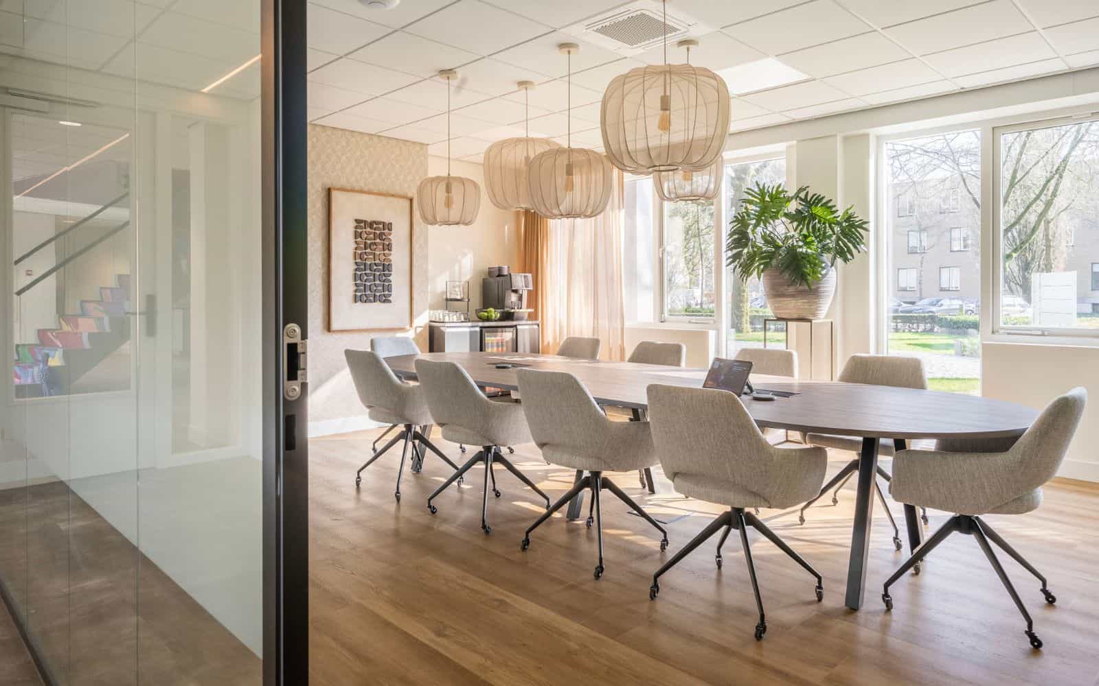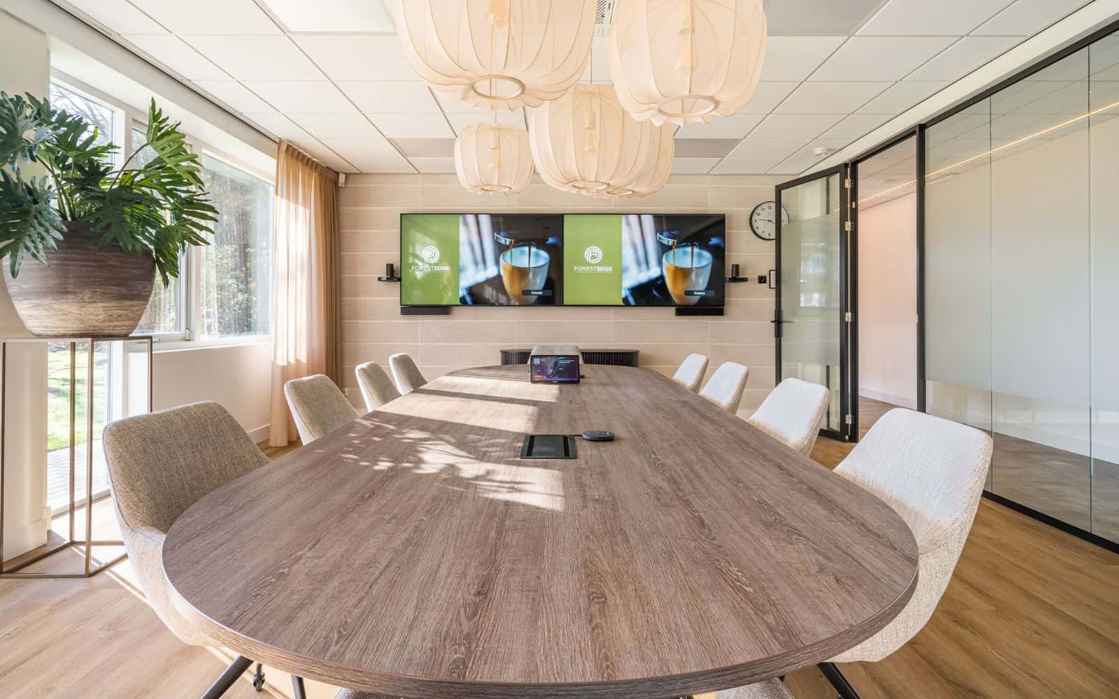Een ruime en high-end conference room die luxe en functionaliteit combineert. Perfect voor strategische sessies, workshops en presentaties.
